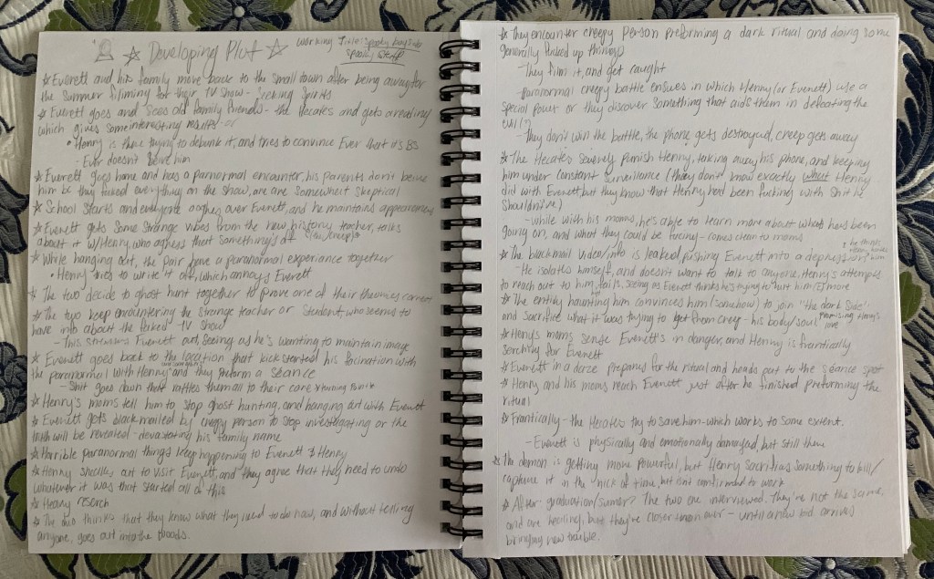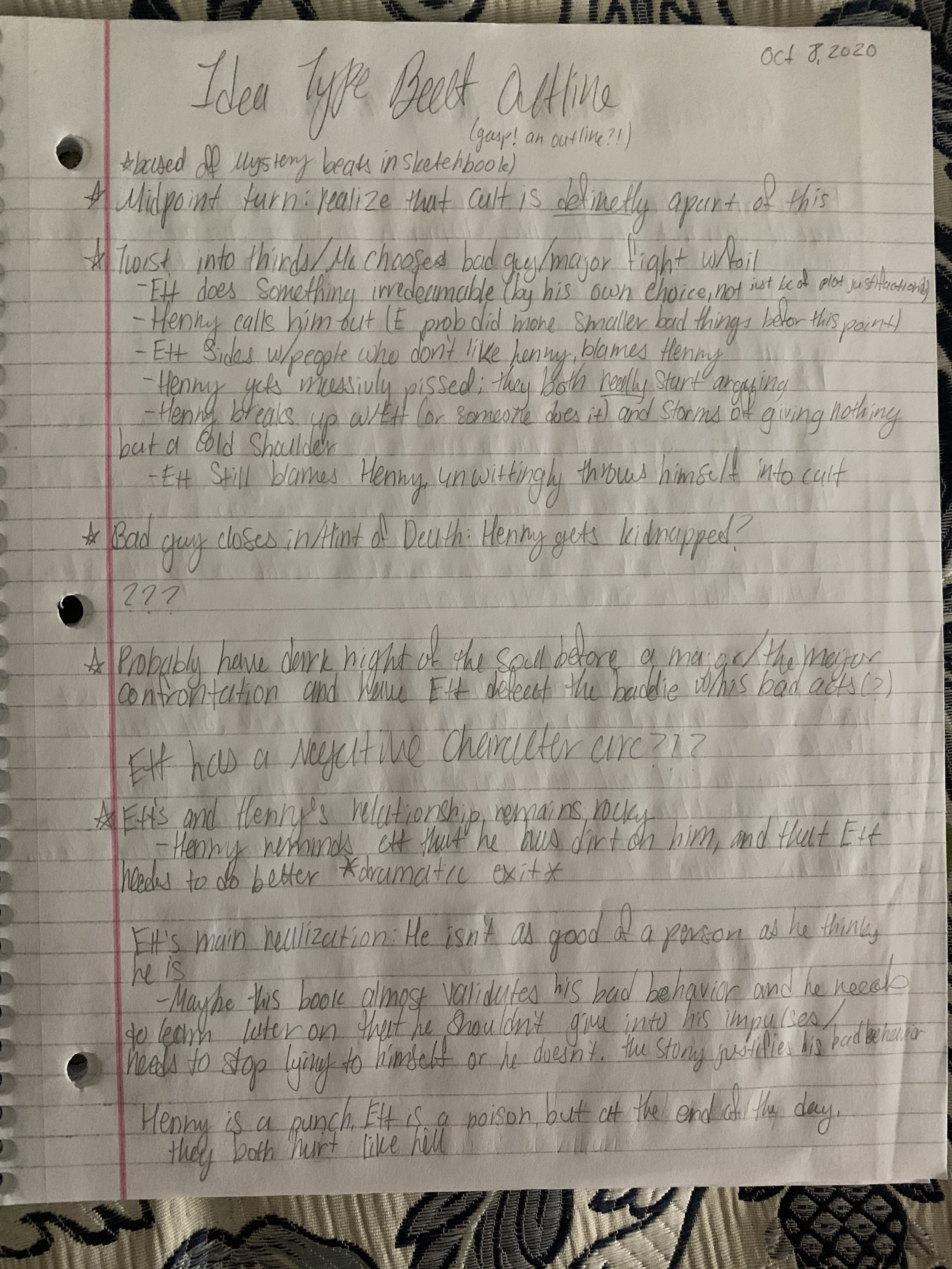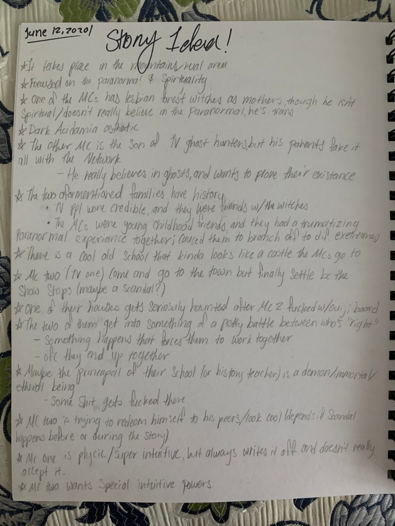 The next day, before school started, I created a Google Doc jotting down all my ideas for the story. The first thing that always comes to me are the characters, so I made an extensive bullet point list for what would become Montoya and Rose.